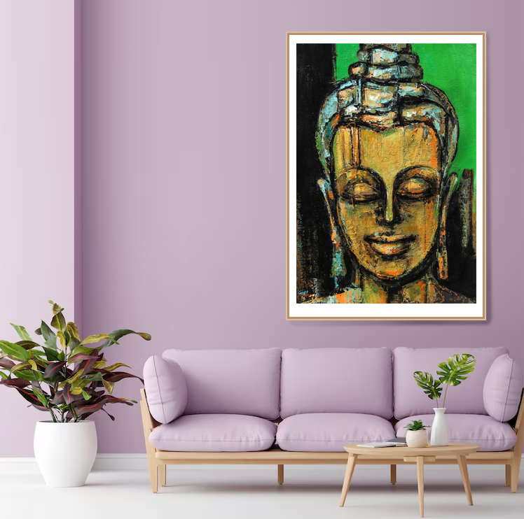 Through the painting, Face of Peace- Buddha Portrait, the artist has tried to instill a sense of peace and calmness in the minds of the onlookers. The hues of green, gold and yellow look divine in this Buddha painting. The colors used in here are acrylic.